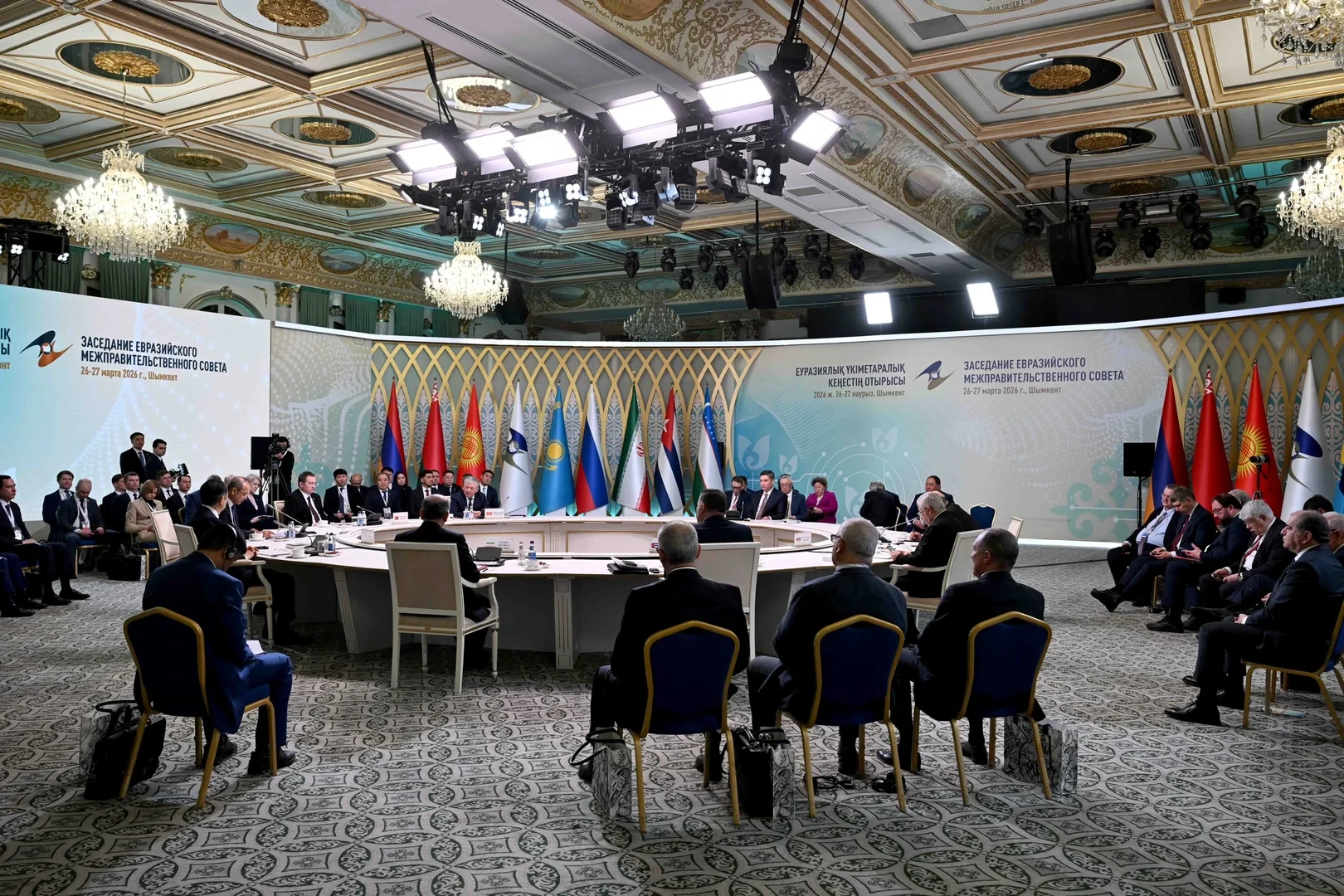 По информации кабинета министров, на встрече, в повестку которой вошло более десяти вопросов, собрались руководители правительств стран-участниц Евразийского экономического союза: Республики Беларусь, Республики Казахстан, Кыргызской Республики, Российской Федерации, а также вице-премьер Республики Армения и главы делегаций государств-наблюдателей при Союзе, включая председателя Коллегии Евразийской экономической комиссии.