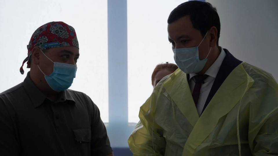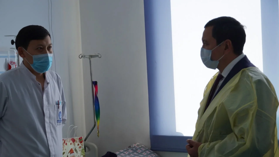 Исполняющий обязанности министра здравоохранения Каныбек Досмамбетов неожиданно посетил отделение...