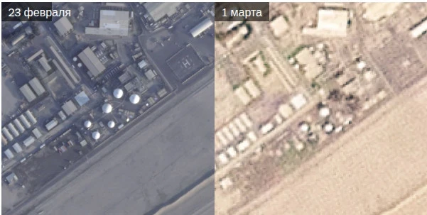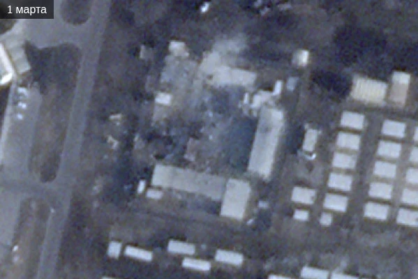 Позже, во вторник, на другом спутниковом снимке видно, что это сооружение значительно разрушено.