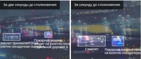 За 30 секунд до столкновения, которое произошло примерно в 23:37, пожарная машина обратилась к диспетчеру за разрешением на пересечение взлетно-посадочной полосы №4 в точке «D». Диспетчер немедленно дал согласие, указав: «Пожарная машина № 1, пересекаем полосу № 4 в точке «дельта»».