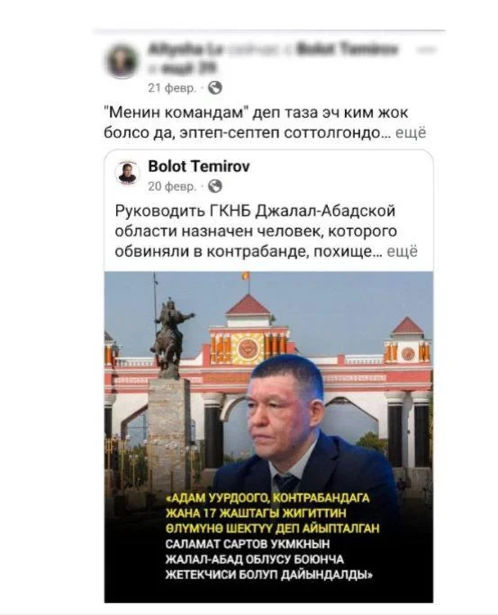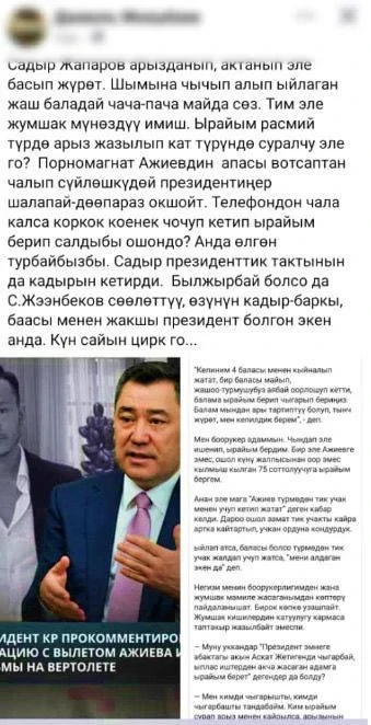 Следственное управление Главного управления внутренних дел Бишкека начало уголовное разбирательство по статье 278 (Призыв к массовым беспорядкам) Уголовного кодекса Кыргызстана.