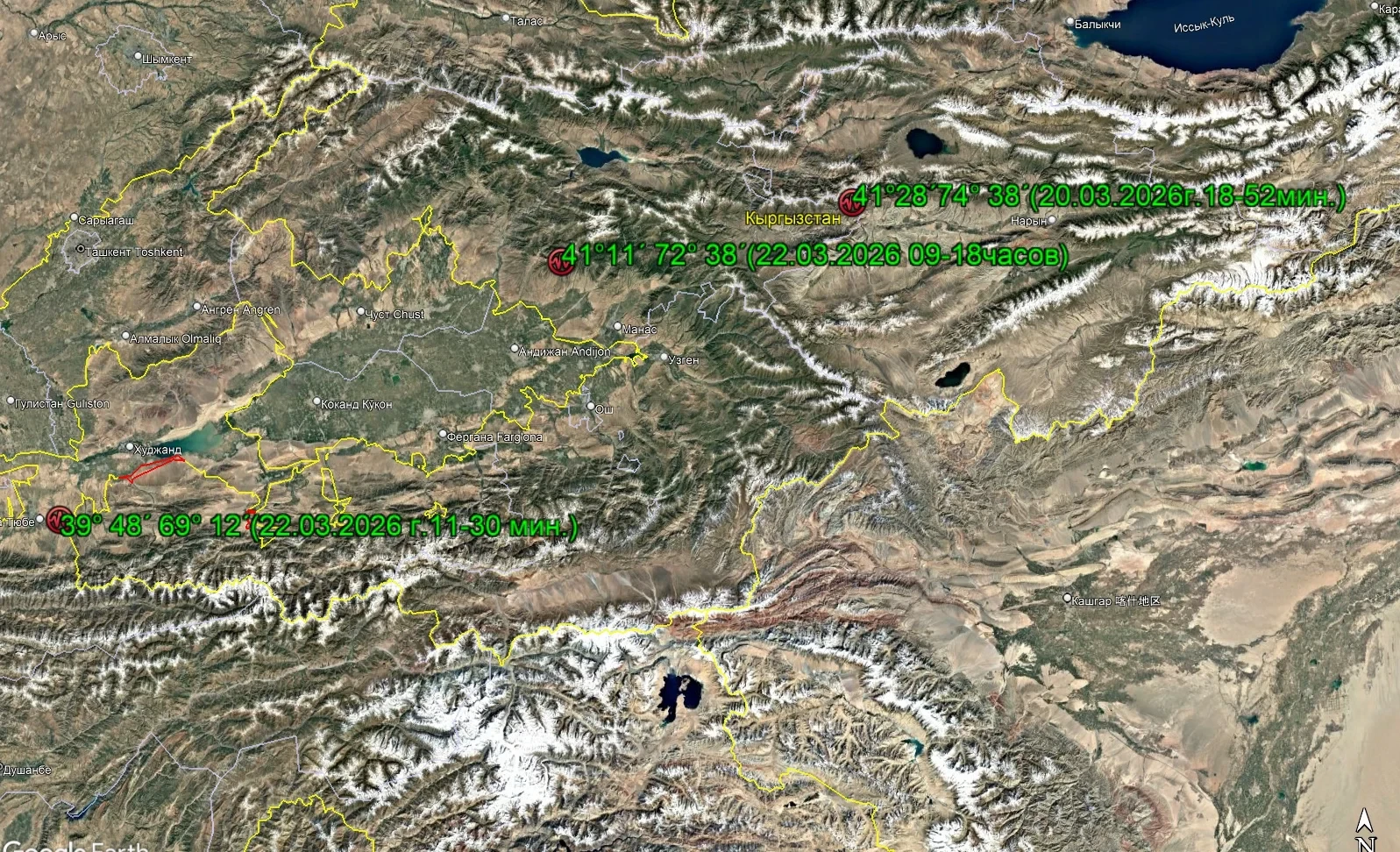Институт сейсмологии Национальной академии наук Кыргызстана сообщил о двух подземных толчках, которые произошли в республике и приграничных районах в воскресенье, 22 марта.