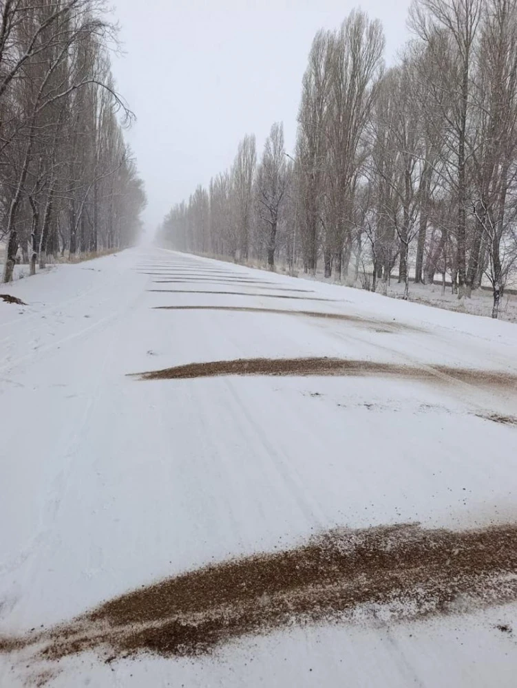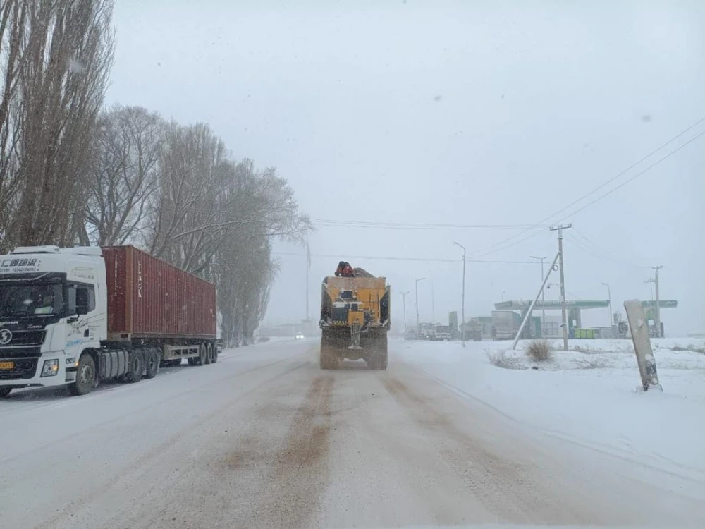 По информации ведомства, снегопад наблюдается на перевалах Отмок (трасса Суусамыр - Талас - Тараз) и Тоо-Ашуу (Бишкек - Ош). Дорожно-эксплуатационные организации №9 и 36 проводят работы по очистке и подсыпке инертных материалов.