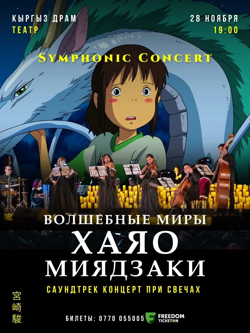 Погрузитесь в мир анимационных шедевров Хаяо Миядзаки под сопровождение симфонического оркестра. Музыка из фильмов, таких как «Унесенные призраками», «Ходячий замок Хаула» и «Мой сосед Тоторо», создаст уникальную атмосферу.