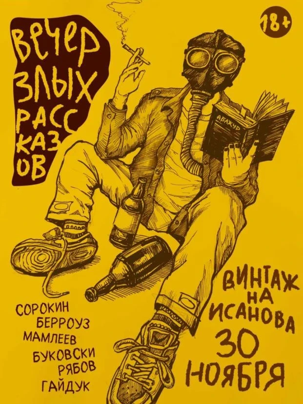 Антон Казаковцев и Максим Гребенщиков представят восемь коротких рассказов авторов маргинальной литературы, таких как Чарльз Буковски и Владимир Сорокин. Тимур Сарбасов дополнит программу музыкальными выступлениями.