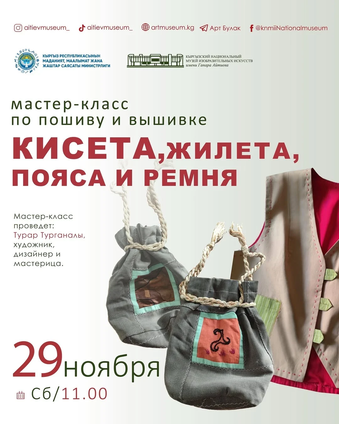 На этом мастер-классе вы сможете научиться создавать кисеты, пояса и ремни под руководством опытного дизайнера Турара Турганалы.