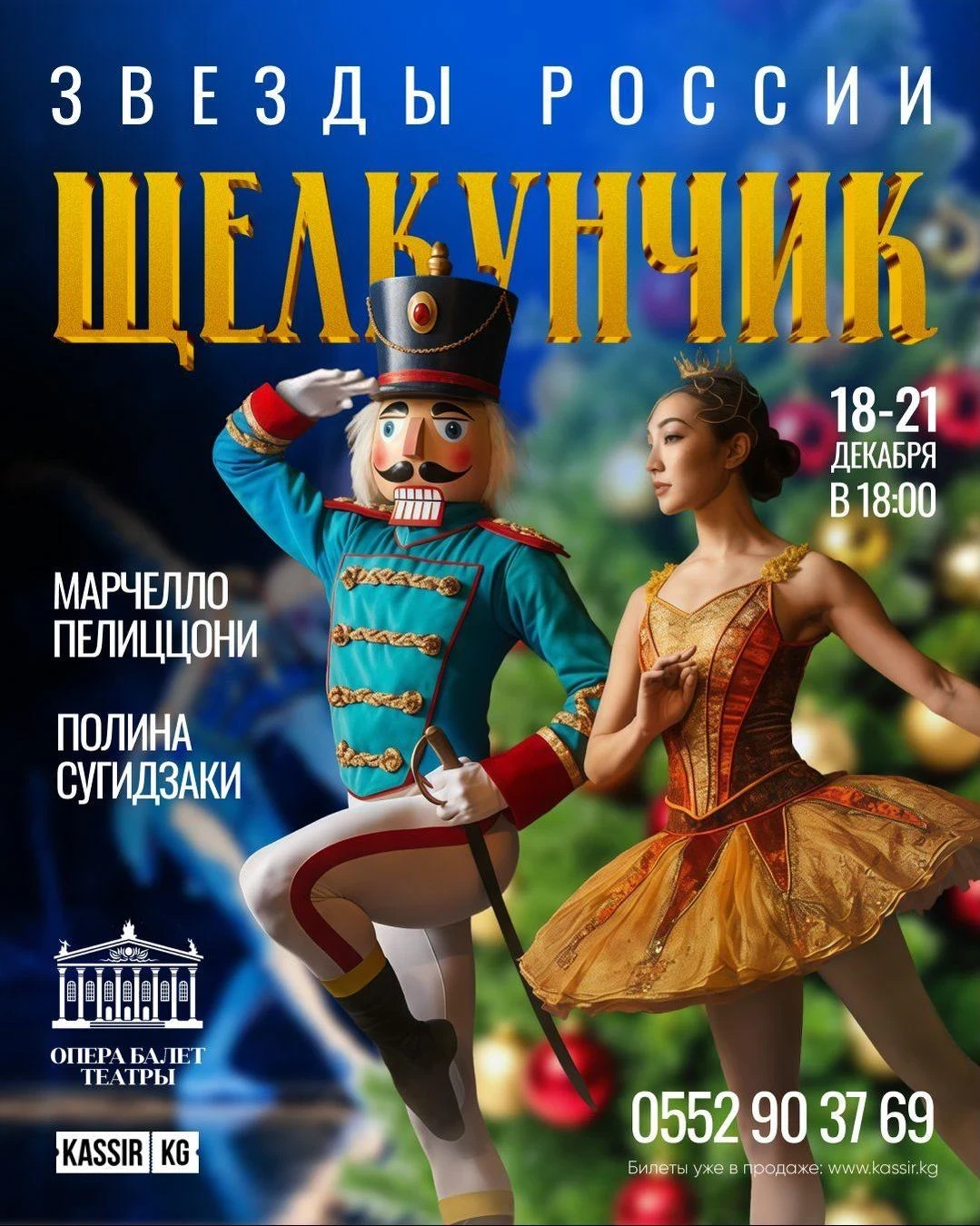 Классический балет «Щелкунчик» перенесет вас в мир фантазии, где сбываются мечты, благодаря сказочным персонажам и волшебной музыке. В роли звезд — Полина Сугидзаки и Марчелло Пелиццони.