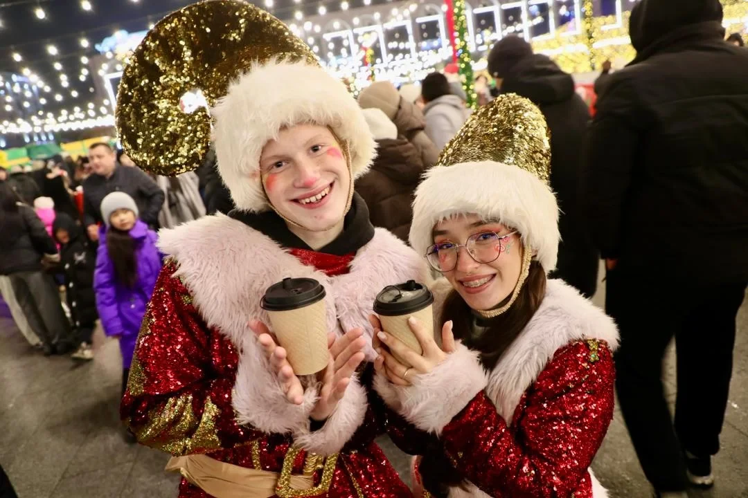 Готовность к торжественному зажжению главного новогоднего символа города демонстрируют сотрудники...