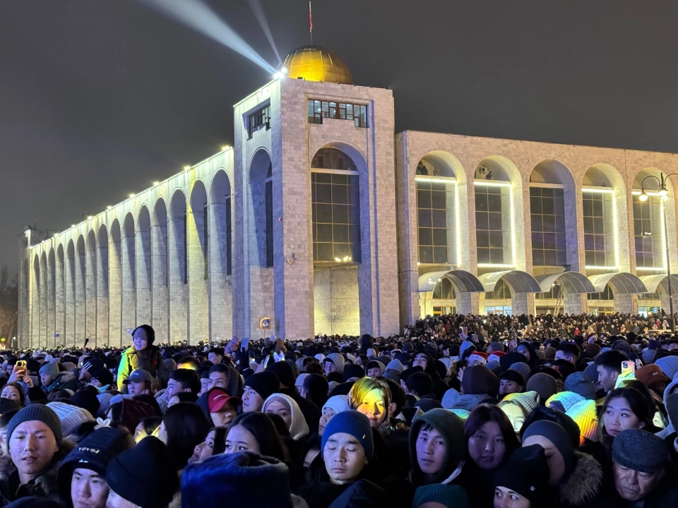 Несмотря на мороз, центральная площадь столицы оказалась полна жителей и гостей. Мэр также поделился достижениями городских властей, рассказав о развитии и преображении Бишкека.