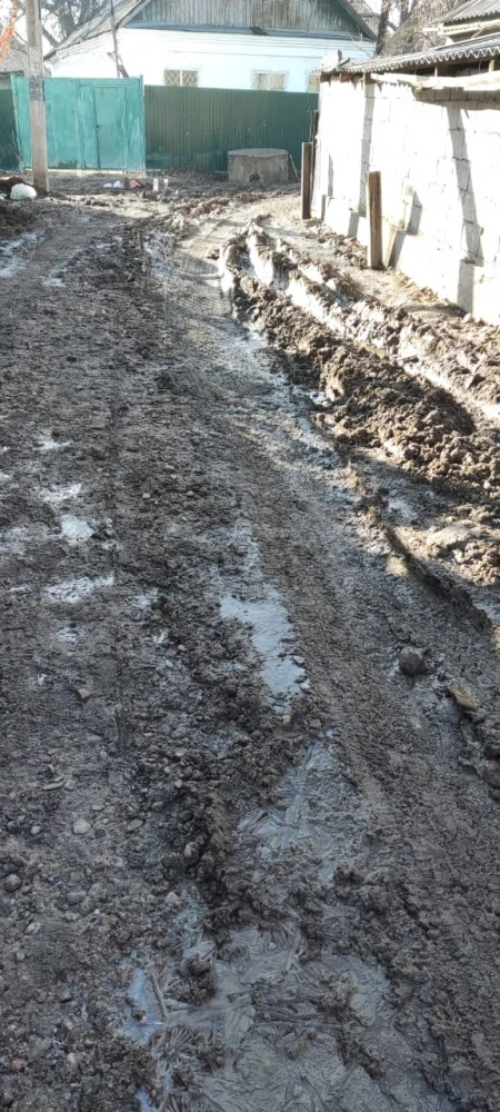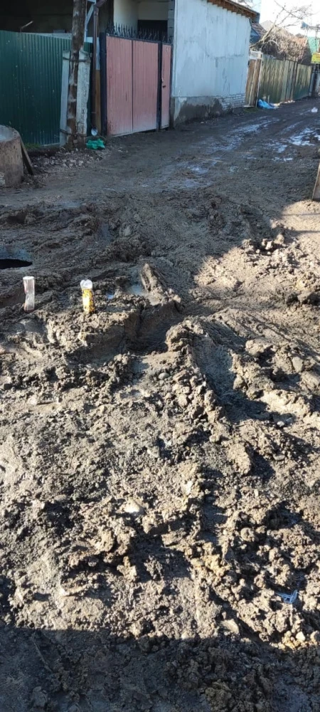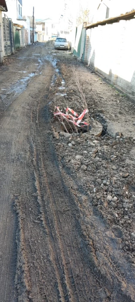 "Мы проживаем в районе Аламединского рынка. На протяжении двух месяцев неизвестная организация занимается раскопками на улице Славянской и в переулке Печерском. Канализация прокладывается, но нам не сообщали, для кого именно. Работы начались в осенне-зимний период. Мы не можем пройти по улице, дети падают в грязь, кто-то уже упал в яму, а машины застревают. Рабочие, выполняющие эти работы, игнорируют наши проблемы", - делятся жители.