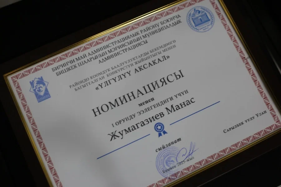 В Первомайском районе Бишкека состоялся финал конкурсов «Үлгүлүү аксакал», «Үлгүлүү байбиче», «Нарктуу келин», «Мыкты ата», «Үлгүлүү үй-бүлө», «Үлгүлүү көчө», «Үлгүлүү конуш», «Үлгүлүү ишкана» и «Үлгүлүү жамаат», о чем сообщили в мэрии столицы.