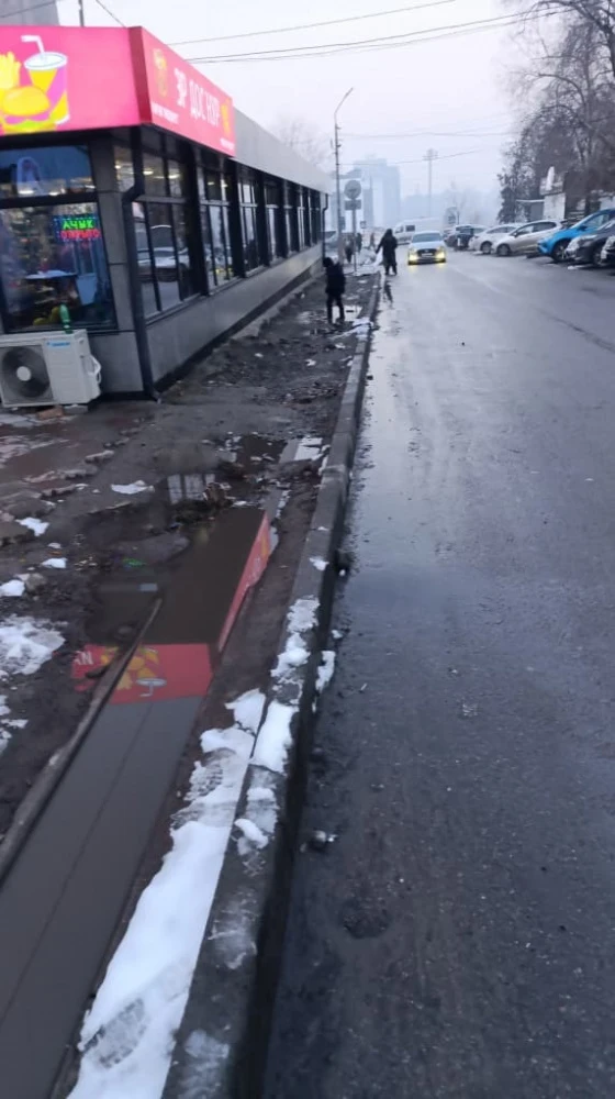 Местные жители отмечают: "Тротуар находится в плачевном состоянии, его фактически нет. Мы вынуждены ходить по дороге. Цех был перемещён с целью освободить место для тротуара, но никаких работ не проведено. Мы призываем акимиат и другие городские власти решить данную проблему", - говорят они.