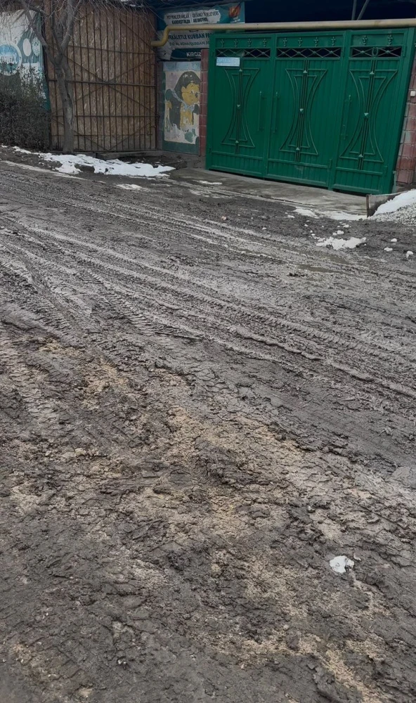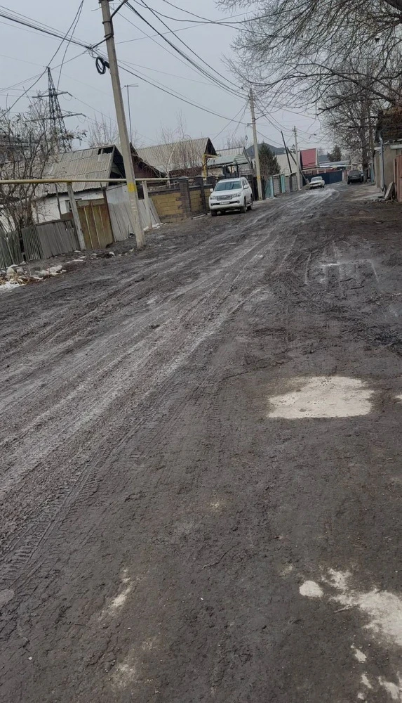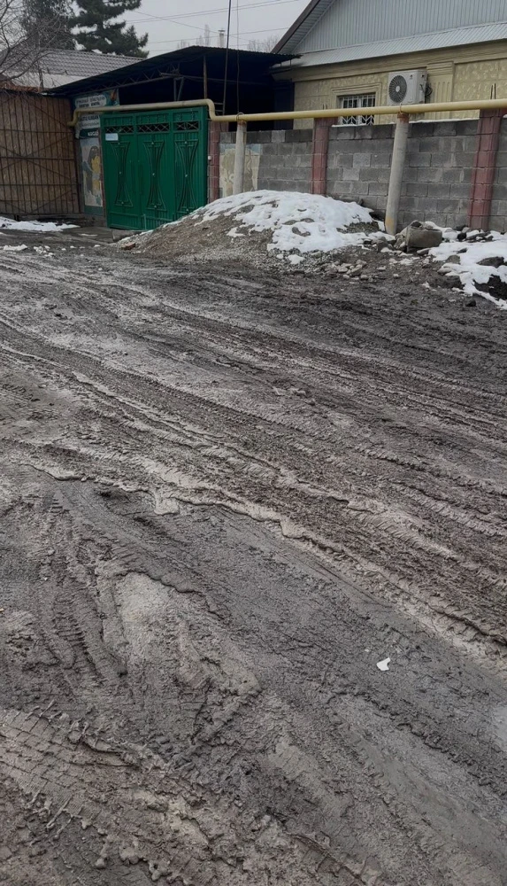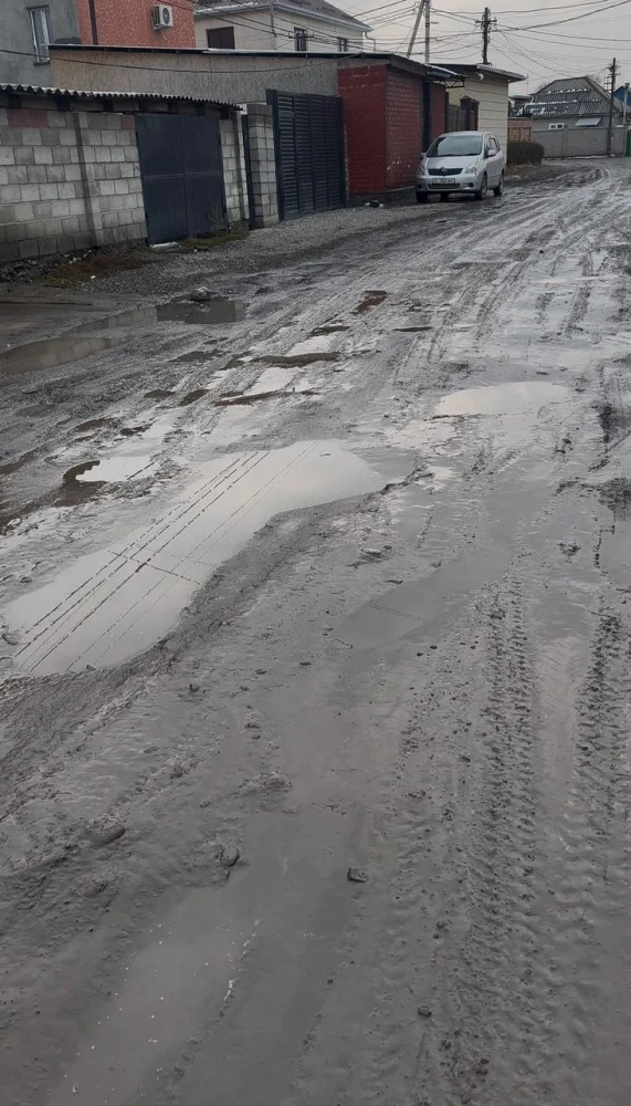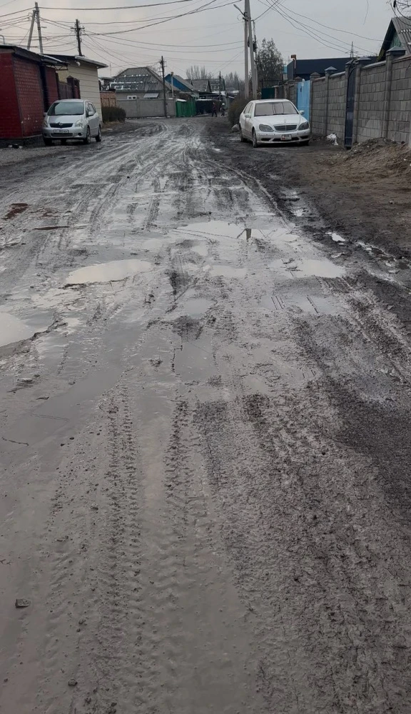По словам жильцов, после дождей им приходится передвигаться по слякоти, поскольку дорога не асфальтирована.