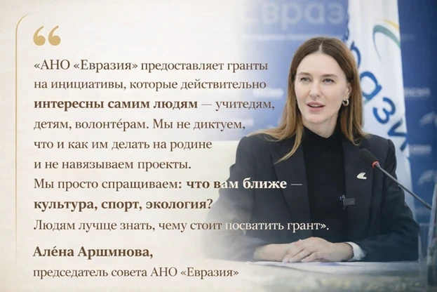 На основе этого понимания была инициирована новая гуманитарная программа в Кыргызстане — деятельность автономной некоммерческой организации «Евразия». В 2024 году было подписано соглашение между Кабинетом Министров Кыргызской Республики и АНО «Евразия» о поддержке множества крупных проектов в области образования, культуры и молодежной политики.