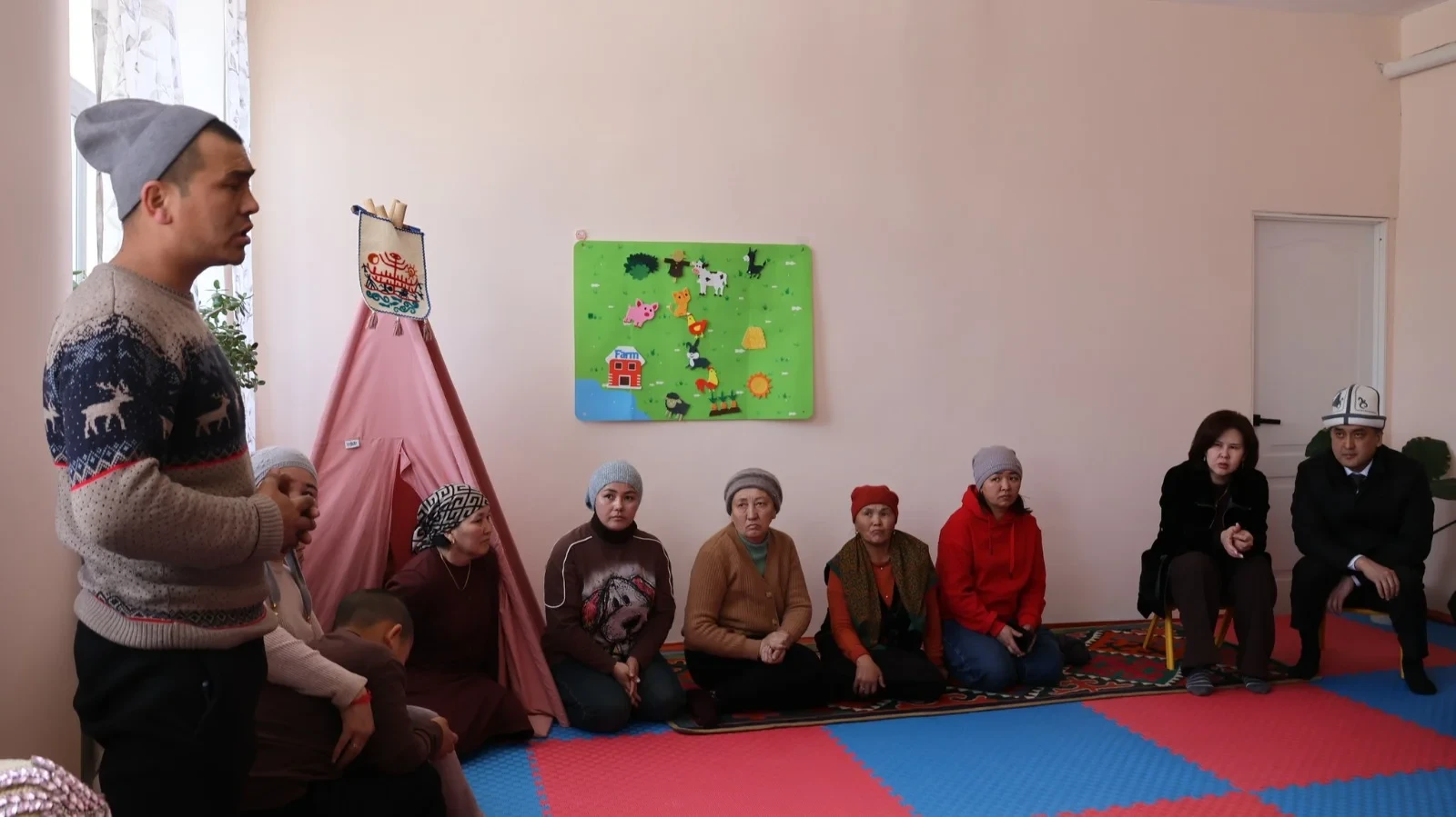 В Нарыне министр труда, социального обеспечения и миграции Кыргызской Республики Канат Сагынбаев провел встречу с родителями детей с инвалидностью, которые получают услуги в реабилитационном центре «Мейкин».