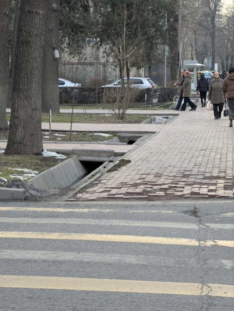 По его словам, "вода на бульваре Эркиндик, рядом со шахматной площадкой и улицей Токтогула, течет из-под земли уже около года и создает неудобства для пешеходов."