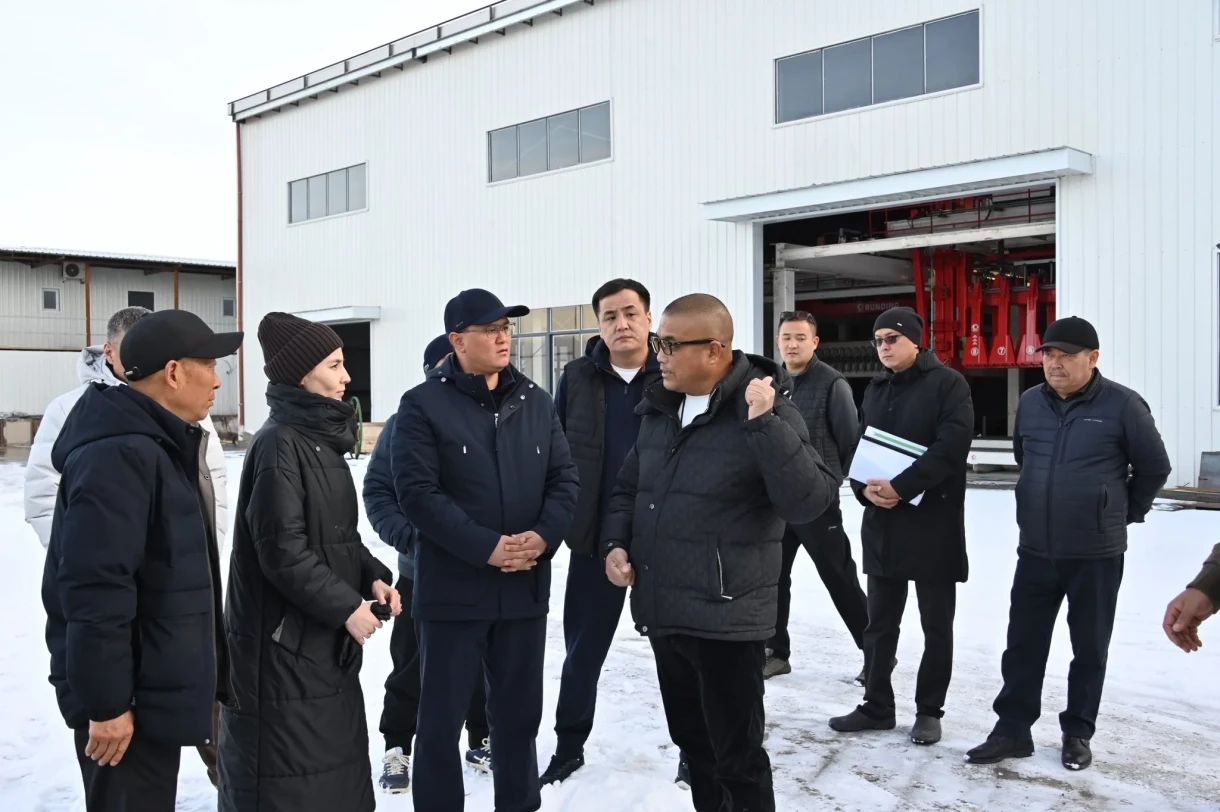 Министр Нурдан Орунтаев ознакомился с процессом строительства завода, расположенного в Ысык-Атинском районе, и изучил состояние производственных помещений и оборудования, которое будет установлено.