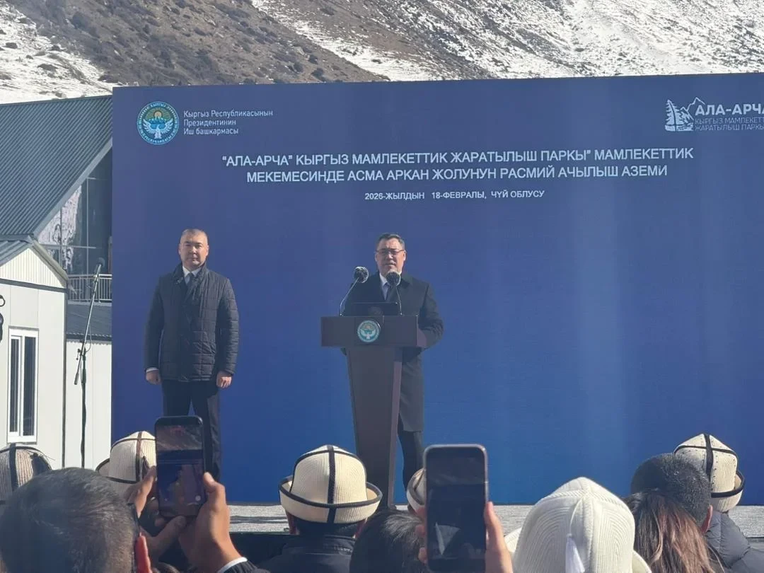 В государственном природном парке «Ала-Арча» сегодня состоялось официальное открытие новой канатной дороги, на мероприятии присутствовал президент страны, Садыр Жапаров.