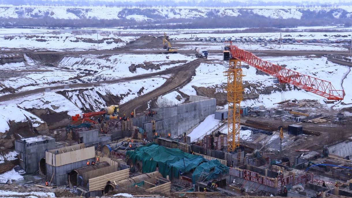 возведение водоотводного канала, берегозащитных сооружений и железобетонных конструкций нижней части здания станции.