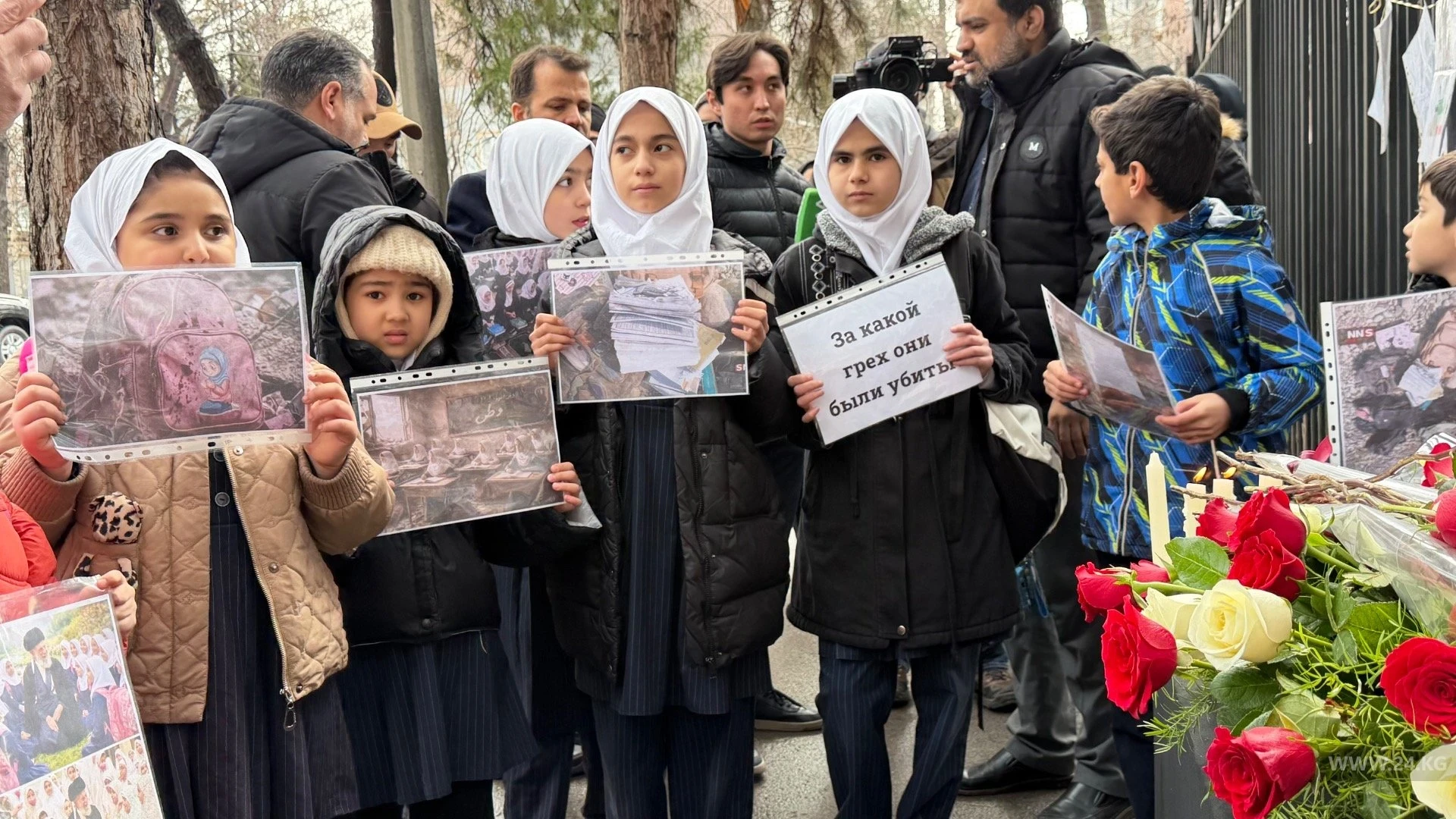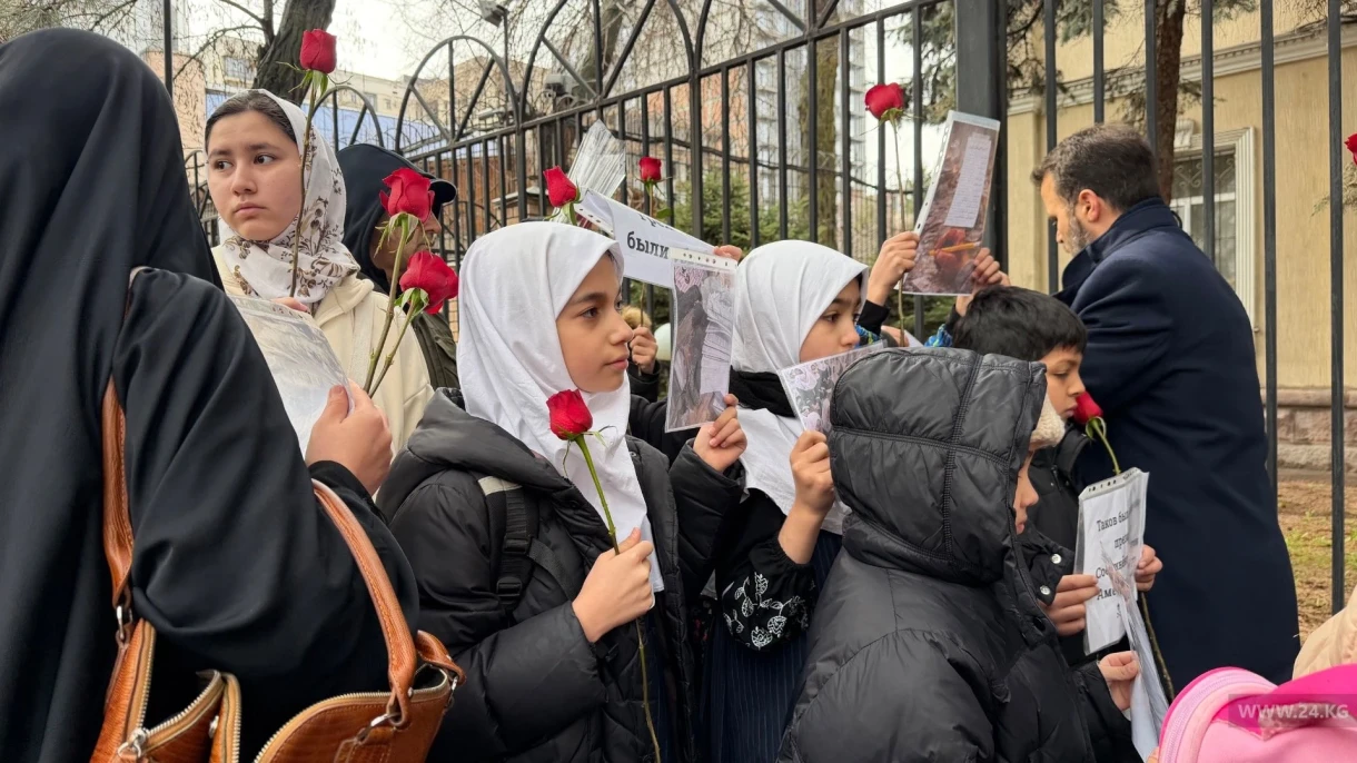 У посольства Ирана в Бишкеке прошел митинг-реквием, собравший гражданских активистов Кыргызстана, которые выразили свои соболезнования семьям жертв, пострадавшим от военной агрессии США и Израиля.