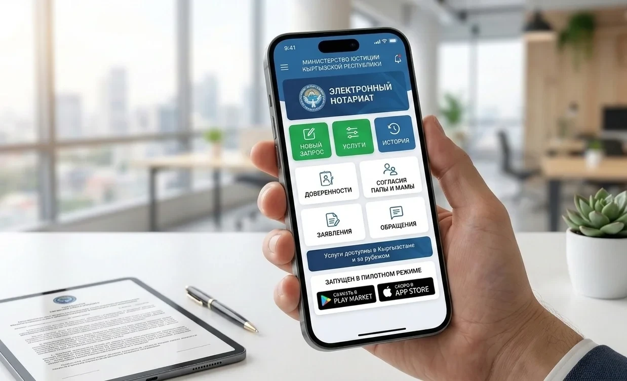 Министерство юстиции Кыргызской Республики анонсировало запуск мобильного приложения «Электронный нотариат» в тестовом режиме.