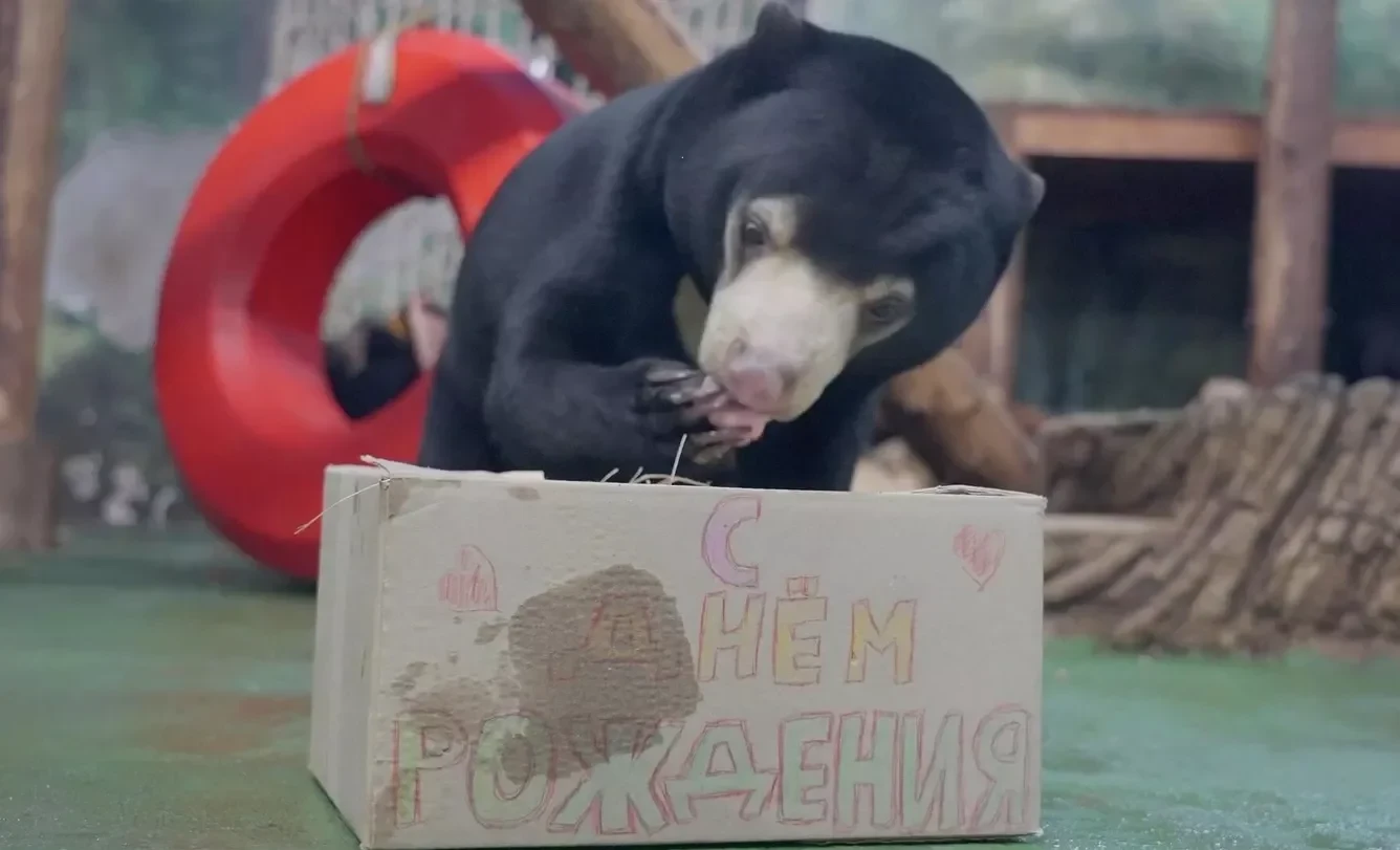 В Московском зоопарке медведице Маше подарили торт на день рождения