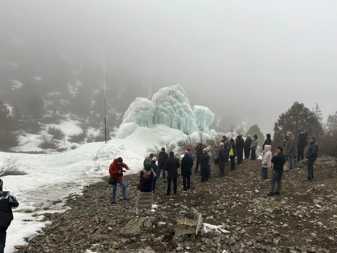 По окончании переговоров делегация отправилась в ущелье Айна-Таш, где посетила один из искусственных ледников, расположенный в селе Кок-Таш Лейлекского района.