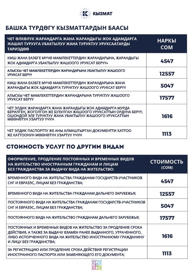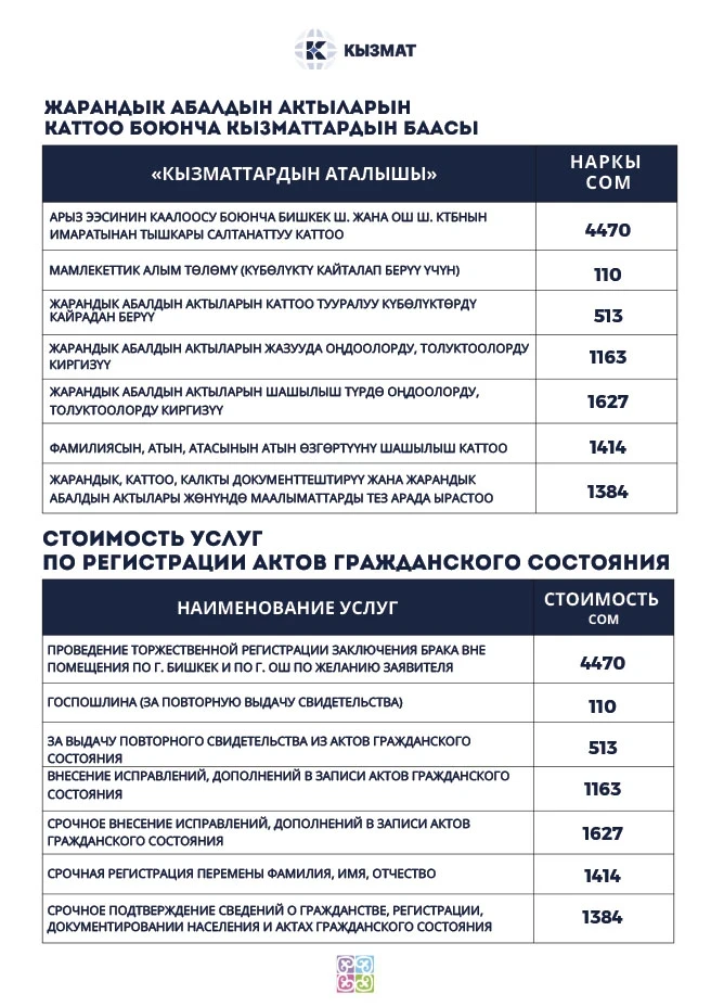 С 1 января 2026 года учреждение «Кызмат» стало самофинансируемым и больше не получает финансирование из государственного бюджета, что и стало причиной пересмотра и повышения тарифов на услуги оформления документов.
