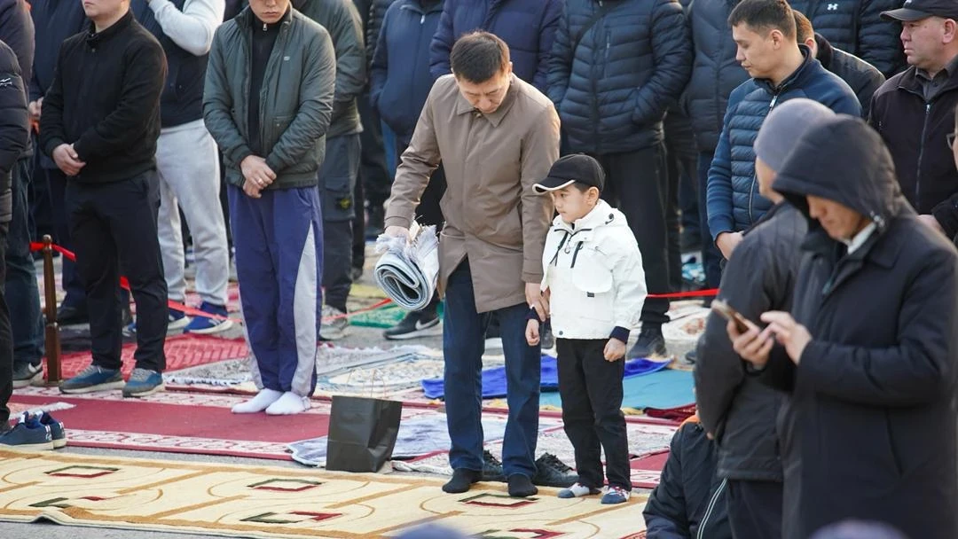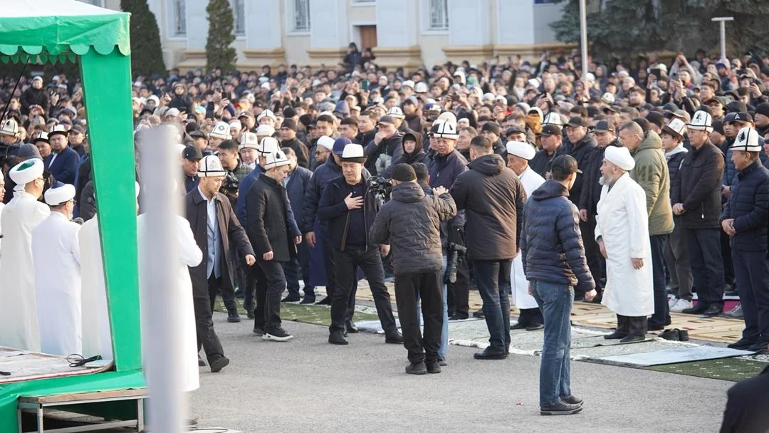 Президент Садыр Жапаров также принял участие в мероприятии, присоединившись к праздничной молитве.