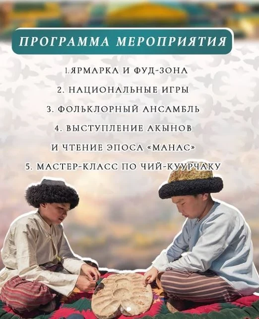В программе — мастер-классы, выступления акынов и музыкальных ансамблей, ярмарка и традиционные игры.