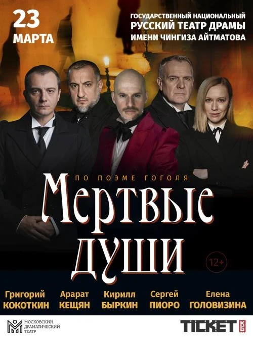 Московский драматический театр предлагает свежую интерпретацию классической поэмы Николая Гоголя. В спектакле участвуют: Григорий Кокоткин, Арарат Кещян, Кирилл Быркин, Сергей Пиоро, Елена Головизина.