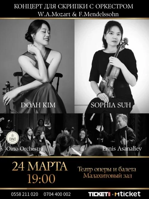 В Бишкеке впервые выступит скрипачка Доа Ким, известная на международной арене. В концерте также примут участие Софья Су (Кыргызстан — Германия) и оркестр «Ойно» под управлением народного артиста Эрниса Асаналиева.