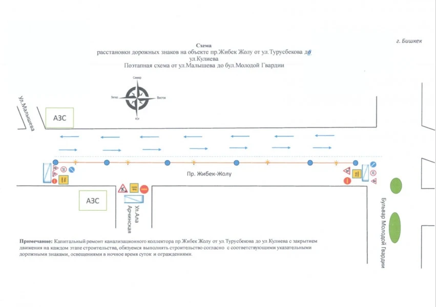 С 24 марта 2026 года в Бишкеке закроют южную часть проспекта Жибек Жолу, от улицы Кулиева до бульвара Молодой Гвардии, для движения автотранспорта. Данная информация была предоставлена пресс-службой мэрии.