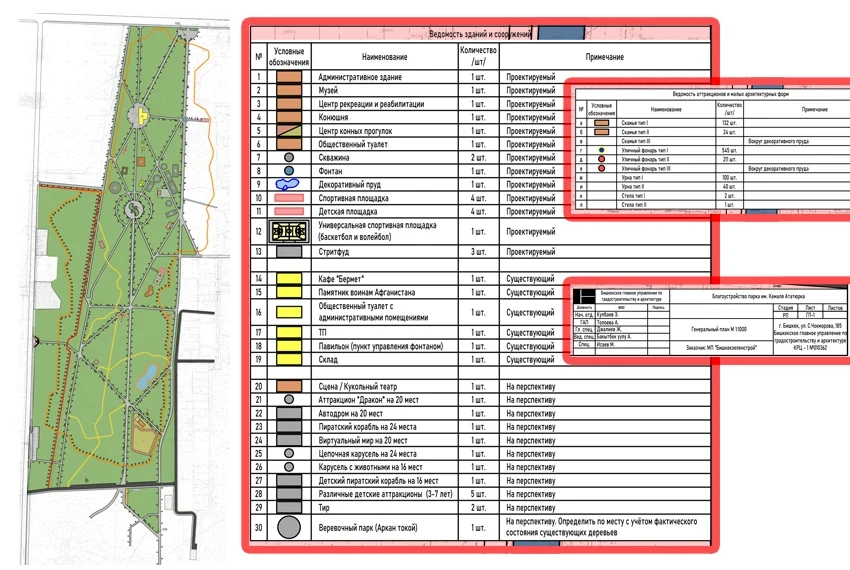Рустам Токталиев, заместитель директора подрядной компании, выполняющей работы, сообщил, что планируется создание небольших объектов, необходимых для функционирования парка. Помимо конюшни, в проект входят центр рекреации для занятий йогой и шахматами (площадь около 600 квадратных метров), музей рядом с памятником воинам-афганцам и административное здание для сотрудников парка.