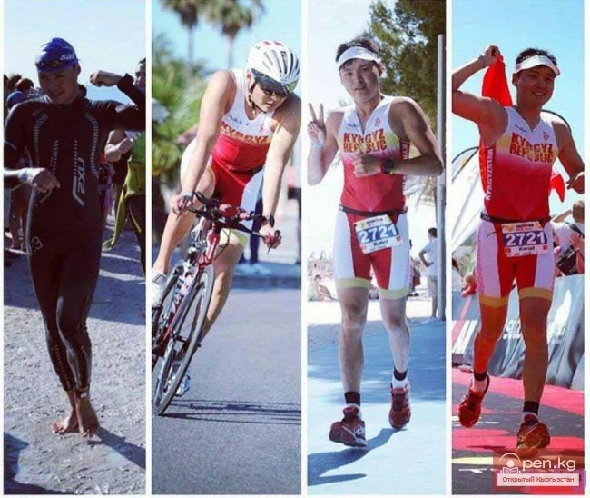 Накануне в пример всем, кто не является профессиональным спортсменом группа отважных кыргызстанцев доказала, что можно одержать победу в любом возрасте, не имея профессиональной подготовки. Президент федерации триатлона и известный бизнесмен Чынгыз Алканов, а также Байкал Малдыбаев и Данияр Оморов прошли испытания, которые именуются в народе «половинкой». В рамках прошедших соревнований необходимо было преодолеть следующие дистанции: 1,9 км- плавание, 90,1 км - велосипед и 21,1 км - бег. В это время вице-президент федерации Канат Келсинбеков стал первым в истории современного государства «Железным человеком». Канат получил право носить звание «Ironman» на международных соревнованиях во Франции. За 12 часов 49 минут вице-президенту федерации триатлона пришлось преодолеть 3 км 800 метров в плавании, проехать на велосипеде 180 км и пробежать марафонскую дистанцию 42 км 195 метров! Для многих из нас это просто невыполнимая миссия, но наш «Железный человек» так не считает.