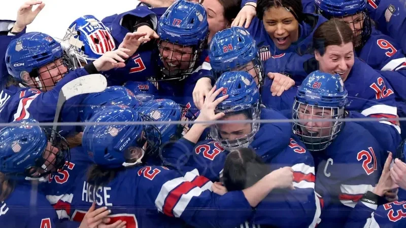 Американские хоккеистки празднуют победу. Фото EPA / Shutterstock.
