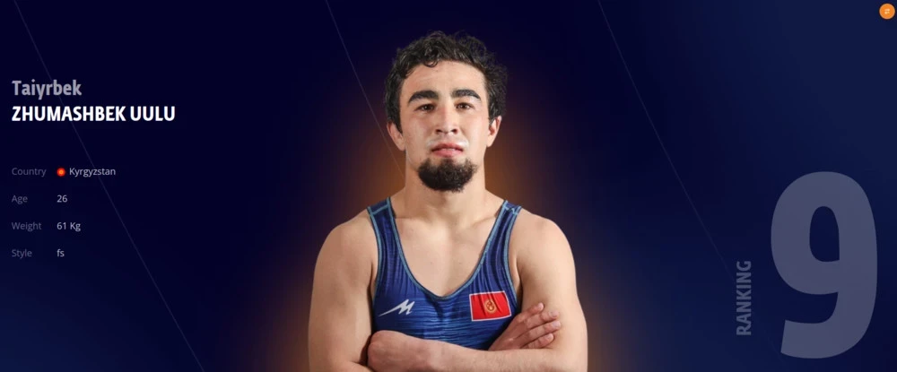Тайырбек Жумашбек уулу занимает 9-е место (до 61 кг), а замыкает десятку лучших Орозобек Токтомамбетов (до 74 кг).