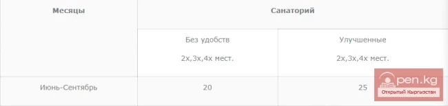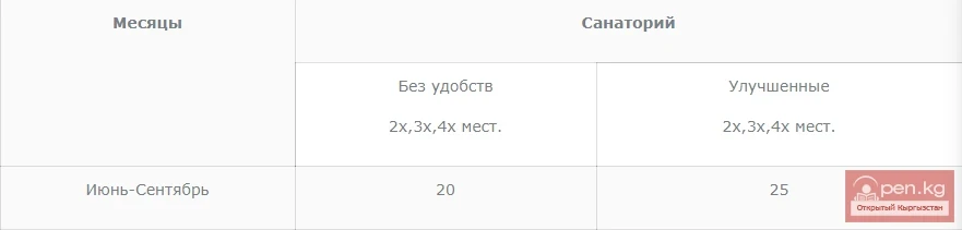 Цены указаны в долл. США на 1 человека в сутки. В стоимость входит проживание и 3 разовое питание и основное лечение.