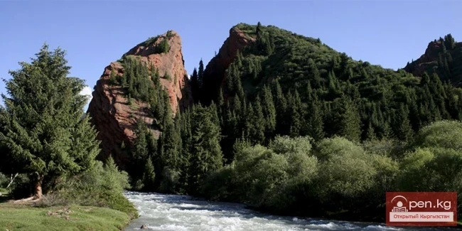 Расположен на северном. склоне Терскей Ала-Тоо, в Жети-Огюзском ущелье, на высоте 2200 м над уровнем моря, возле Жети-Огюзских скал в долине реки Жети-Огюз, в одной из самых живописнейших местностей с хвойными лесами, в 28 км от города Каракола и 392 км от Бишкека.