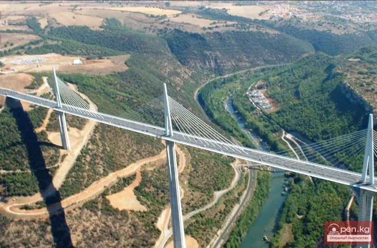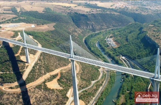 Особенно фантастическое зрелище мост представляет собой тогда, когда под ним собирается облачность: в этот момент кажется, будто виадук завис в воздухе и не имеет под собой ни одной опоры. Высота моста над землей в самой верхней его точке составляет чуть более 270 метров. Длина моста 2.5 км и он является частью дороги из Парижа в городок Безье. На его строительство было израсходовано почти 400 млн. евро, поэтому проезд по нему платный, примерно через 80 лет мост себя должен окупить.