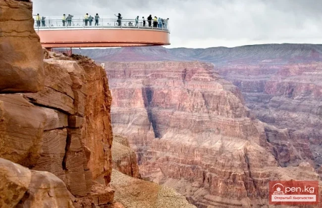 Выполненная в виде подковы смотровая площадка "Grand Canyon Skywalk" находится в Гранд-Каньоне на высоте 1219,2 метра, к тому же она выдвинута от края каньона на 20 метров, что позволяет насладиться великолепным обзором на парк. Прозрачные поручни и пол из стекла повышенной чистоты созданы для того, чтобы во время прогулки по "Skywalk" создавалось впечатление, что Вы как будто парите в воздухе.