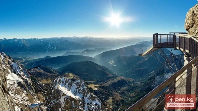 Необычная конструкция появилась летом 2010 года над «Адской долиной» в баварских Альпах. Две скрещенные платформы зависли прямо над бездной – именно так выглядит вызвавшая столько ожесточенных споров смотровая площадка AlpspiX.