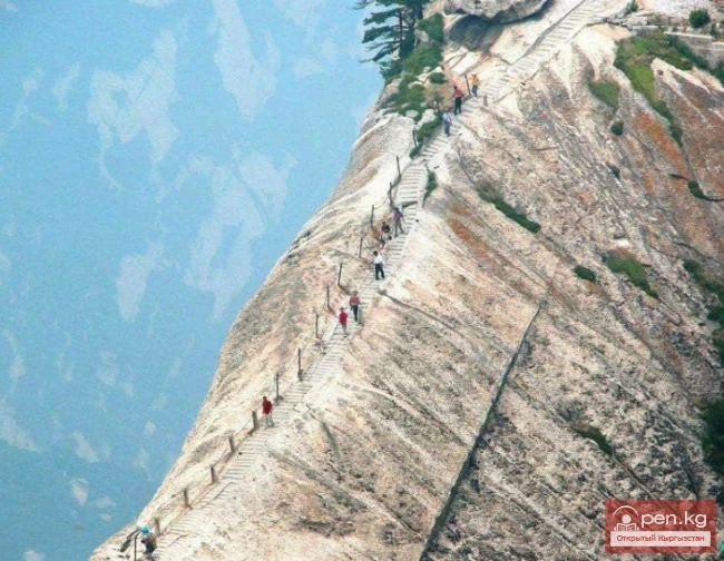 Тем, кто боится высоты, "Небесную Лестницу" в Китае лучше не посещать. Лестницы, ведущие на гору Хуашань - одну из пяти священных гор даосизма в Китае, способны напугать буквально до дрожи в коленках. После вертикального восхождения начинается не менее жуткая горизонтальная прогулка — дорожка шириной всего в три доски, прибитых прямо к вертикальному склону горы, и лишь одна цепь, за которую можно держаться. После этого — снова череда извилистых ступеней. На вершине горы Хуашань, вы узнаете, что «небеса» — это труднодоступный чайный домик с потрясающим видом.