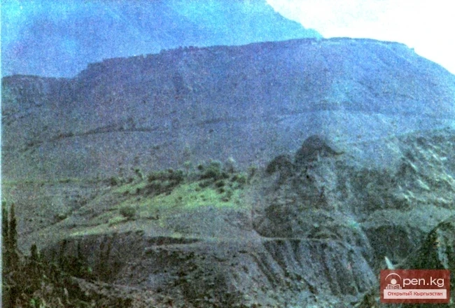 Вторая, северная часть почти в два раза меньше южной. В северо-западном ее углу прослеживаются развалины трех прямоугольных в плане построек. В некоторых местах заметны постройки, примыкающие к крепостной стене. В центре южной части расположены ворота, фланкированные двумя башнями, соединяющие северную часть с южной. Определенной геометрической формы крепость не имеет, и визуально назвать ее размеры трудно. В стратегическом отношении крепость располагалась на очень удобном месте и фактически была неприступна: с одной стороны защищена крутыми склонами холма, с другой — горами. Крепость осуществляла контроль над всей межгорной долиной р. Сох. Наиболее уязвимым местом крепости являлось снабжение ее водой: в случае перекрытия единственного арыка она могла остаться без воды.