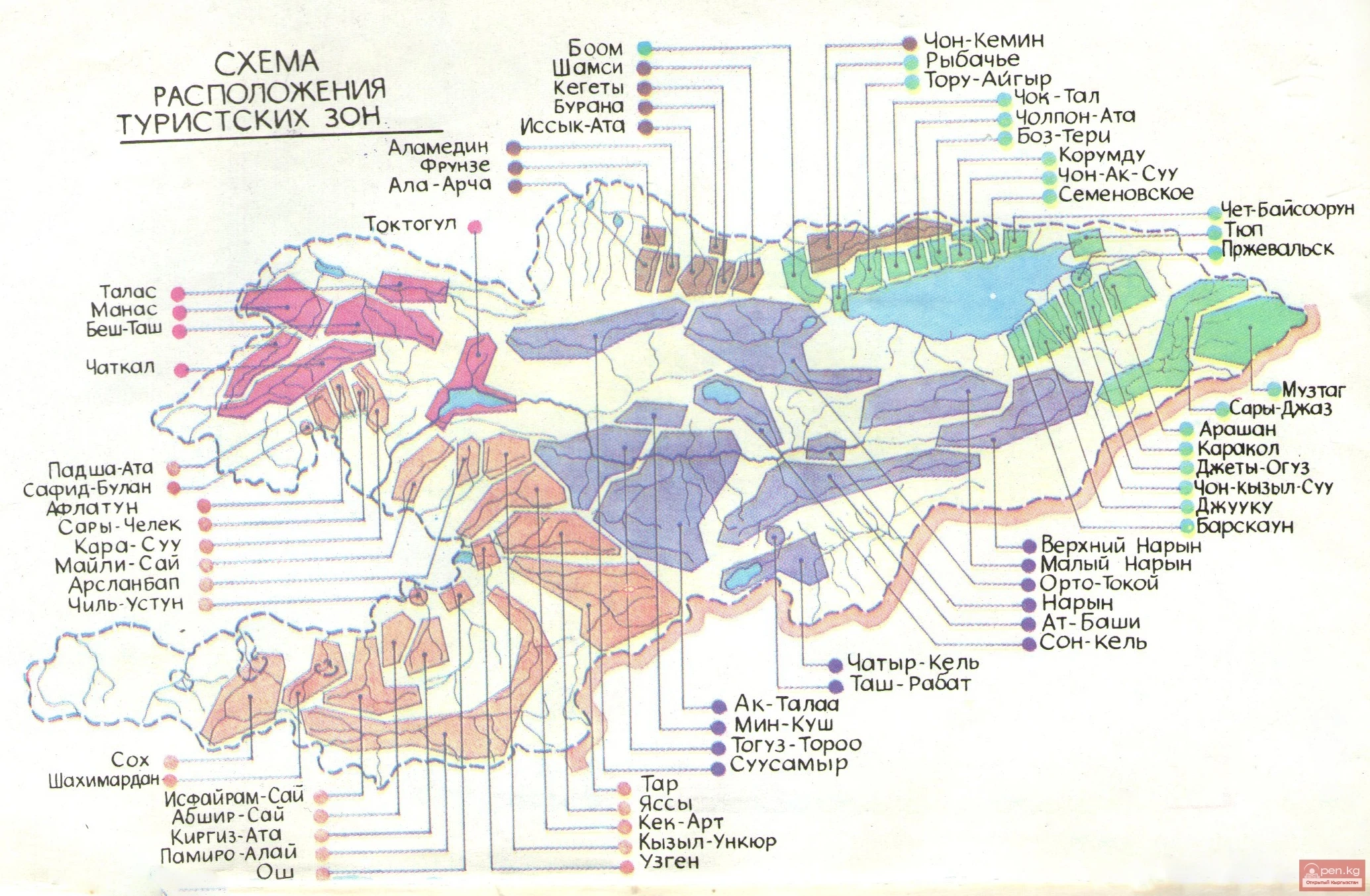 Схема туристических зон Кыргызстана