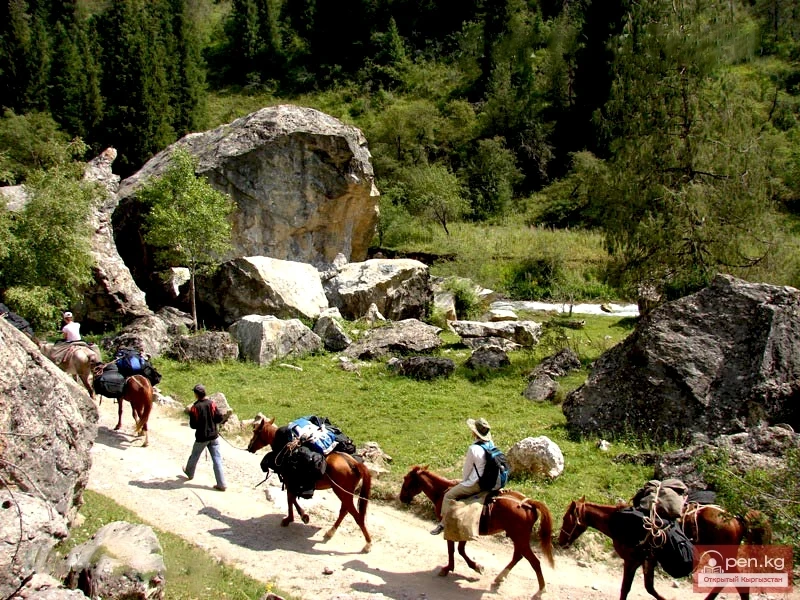 Нитка маршрута: г. Бишкек — шлагбаум ущелья Ала-Арча — альплагерь — верховья ущелья Ала-Арча — альплагерь — г. Бишкек.