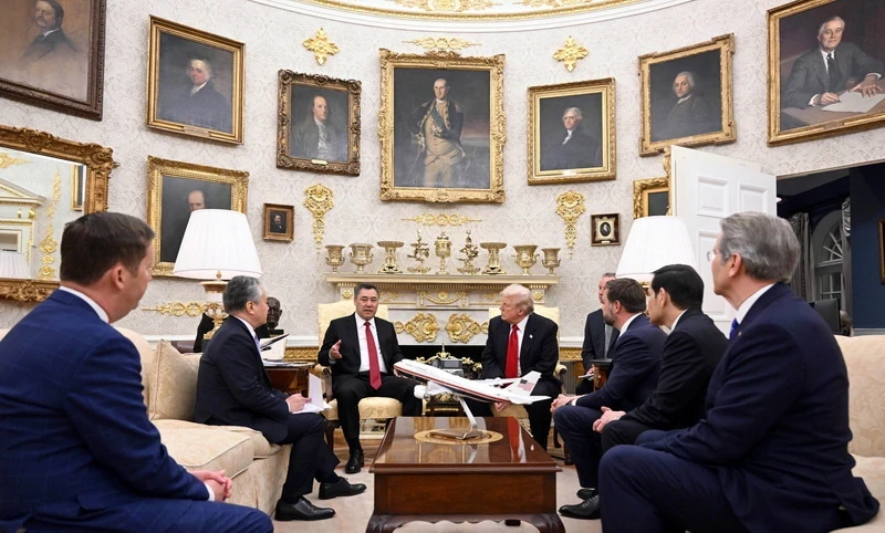 Трамп, в свою очередь, тепло встретил Жапарова и отметил положительную динамику в развитии двусторонних отношений.Президент США подчеркнул, что конструктивный диалог между двумя странами будет способствовать дальнейшему развитию сотрудничества и реализации совместных инициатив, направленных на устойчивое развитие и благосостояние народов Кыргызстана и США.