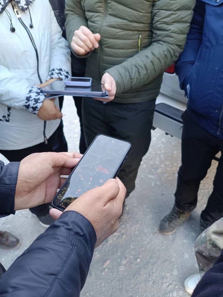 Участники тренинга выезжали на потенциально опасные участки в Араванском и Алайском районах Ошской области, где проводили валидацию спутниковых данных и собирали информацию о рельефе и характеристиках местности, что было необходимо для дальнейшего анализа состояния земель.